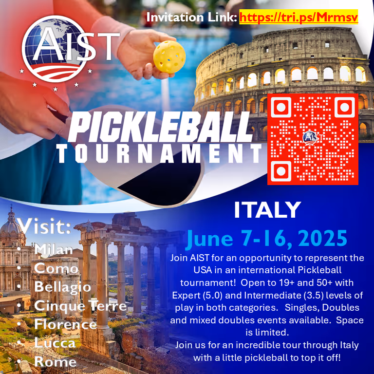 Since 2001, AIST has been a leader in providing international sports tours for college and high school athletes across various sports. We have a rich history of helping athletes experience competitive play in exciting locations around the world, and we are now bringing that same dedication to the ever-growing community of pickleball players. Our team understands the unique blend of competition and exploration that athletes seek, and we are eager to provide this new opportunity for adult pickleball players.